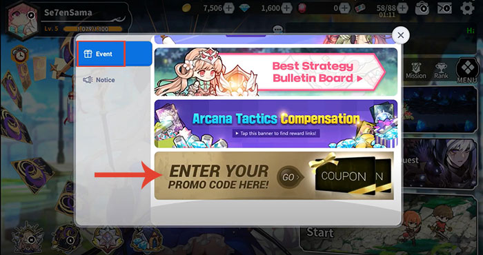 Nếu các thiết bị iOS không có tùy chọn nhập code trong Arcana Tactics, hãy dùng thiết bị iOS của mình và nhấn vào mã code (đã được dẫn link), sau đó quay trở lại trò chơi, kiểm tra hộp thư để nhận phần thưởng
