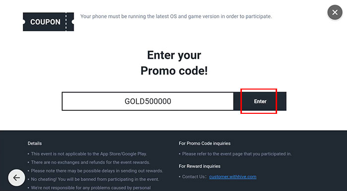 Bước 3: Kéo xuống và chọn Enter Your Promo Code Here trong mục Event.