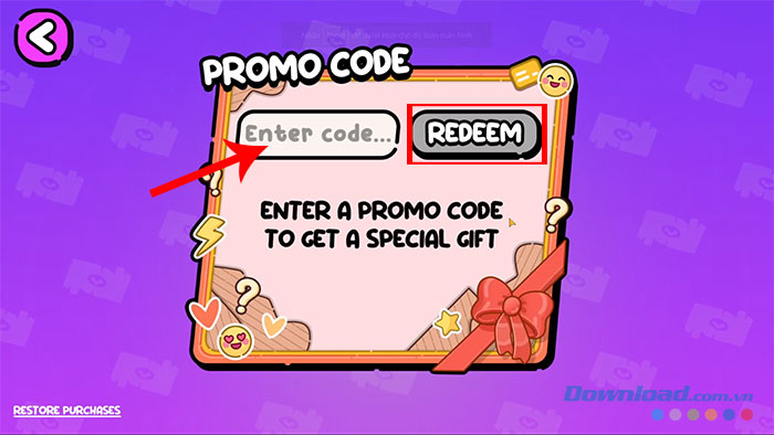 Bước 3: Nhập chính xác hoặc sao chép mã code được cung cấp ở phía trên và dán vào ô trống Enter code. Sau đó nhấn nút Redeem để dùng code.