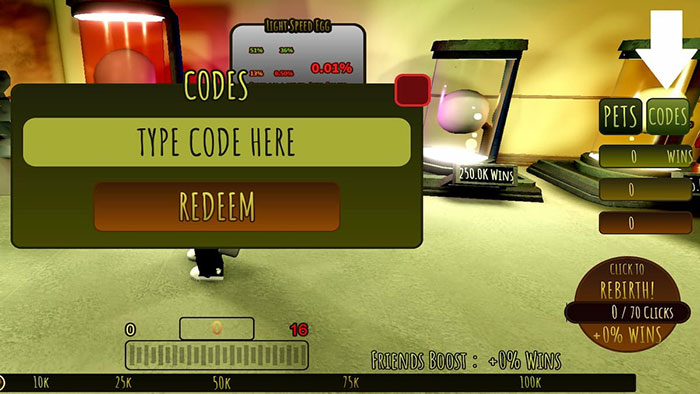Cũng như nhiều trò chơi Roblox khác, Backrooms Race Clicker thường xuyên dành tặng game thủ các mã code quy đổi nhiều vật phẩm hữu ích. Các mã code Backrooms Race Clicker này sẽ mang lại nhiều phần thưởng khác nhau, chẳng hạn như các booster, gem và tiền xu.