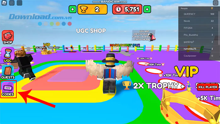 Bước 1: Mở Math Block Race từ trang web hoặc ứng dụng Roblox và nhấn vào nút Codes ở góc dưới cùng bên trái để mở cửa sổ Codes.