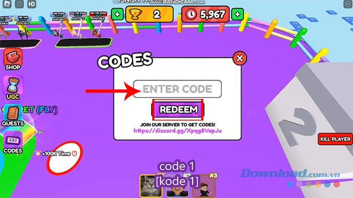 Bước 2: Nhập chính xác hoặc sao chép mã code được cung cấp phía trên vào ô trống Enter code. Cuối cùng, ấn vào nút Redeem để xác nhận dùng code và thu thập phần thưởng ngay lập tức.