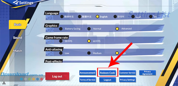 Bước 2: Trong tab Basic, nhấn nút Redeem Code.
