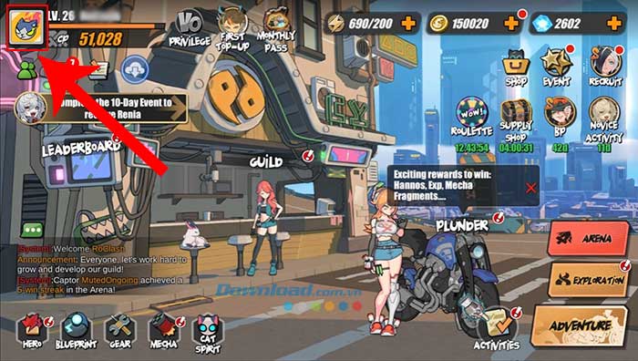 Bước 1: Mở Captor Clash trên thiết bị và nhấn vào biểu tượng thông tin nhân vật ở góc trên cùng bên trái.
