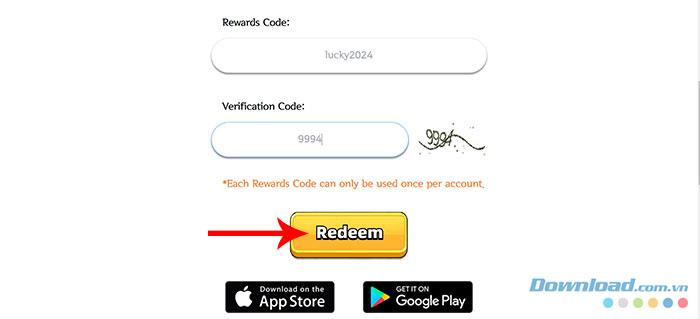 Bước 4: Điền mã xác thực ở mục Verification Code và nhấn vào nút Redeem.