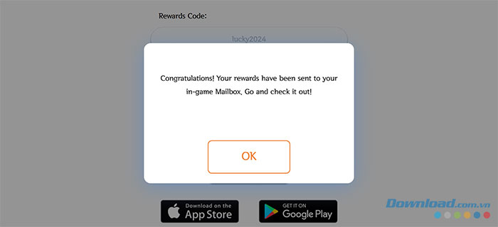 | lucky2024 | 100 Gems và 1 Legendary Key |