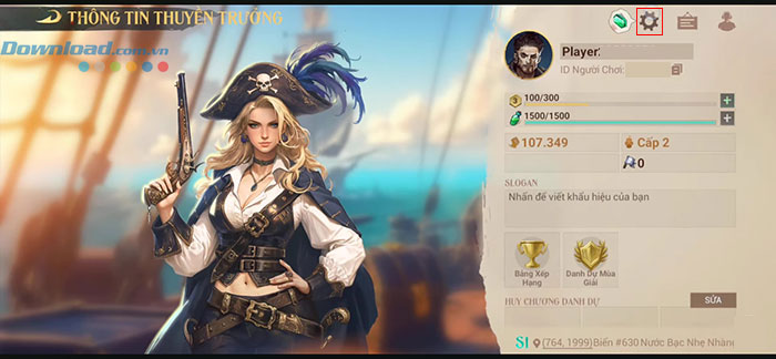 Bước 2: Nhấn vào bánh răng cài đặt ở góc trên cùng bên phải cửa sổ Thông tin thuyền trưởng.