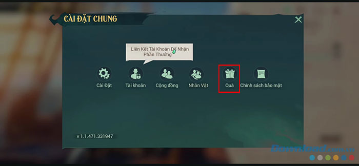 Bước 3: Trong cửa sổ Cài đặt chung, chọn Quà.