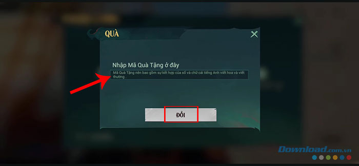 Bước 4: Nhập chính xác hoặc sao chép mã code được cung cấp ở phía trên vào ô trống và nhấn nút Đổi để thu thập để thu thập phần thưởng tương ứng.