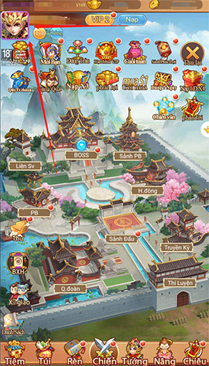 Bước 1: Mở Cực Loạn 3Q trên thiết bị và nhấn vào biểu tượng avatar nhân vật ở góc trên cùng bên trái.