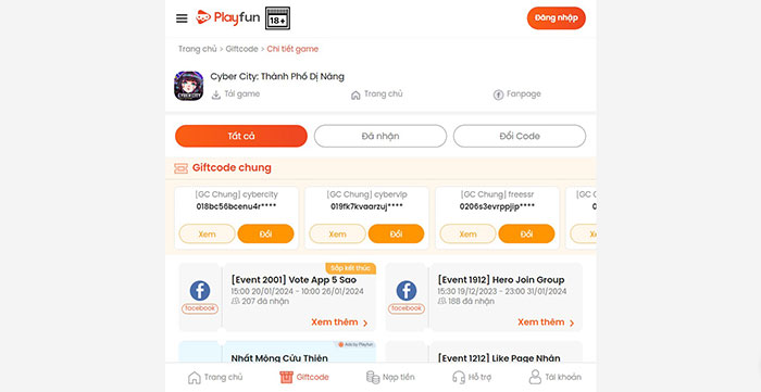 Bước 1: Truy cập trang web https://playfun.vn/giftcode/cyber-city và đăng nhập vào tài khoản Playfun.