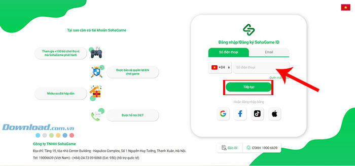 Bước 1: Truy cập trang web https://nap.sohagame.vn/ và tiến hành đăng nhập vào tài khoản SohaGame của mình.