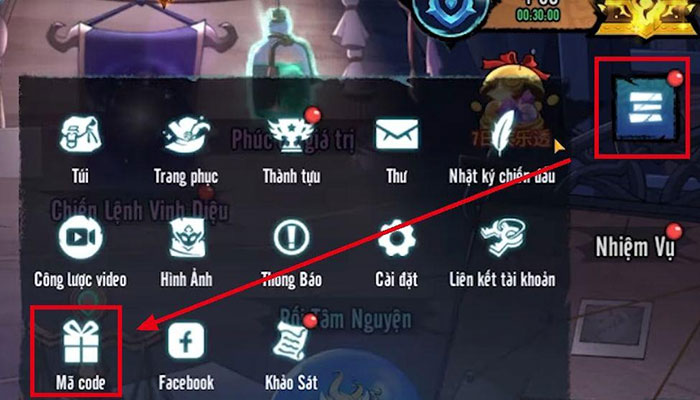 Bước 2: Trong cửa sổ vừa mở ra, chọn Mã code (biểu tượng hộp quà).
