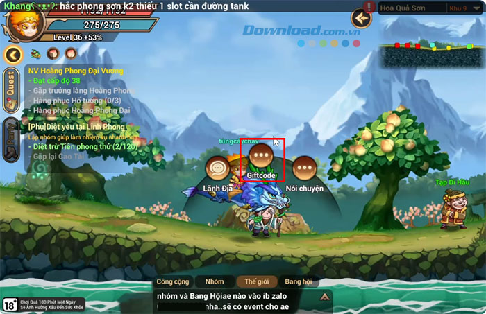 Bước 2: Chạm vào Giftcode.