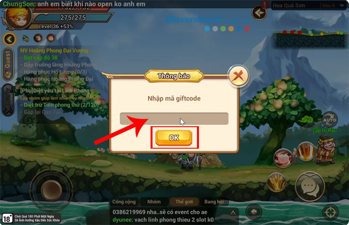 Bước 3: Nhập chính xác hoặc sao chép mã code được cung cấp ở phía trên và dán vào ô trống. Sau đó, bấm nút OK để xác nhận dùng code.