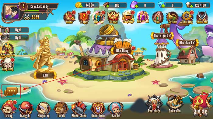 Bước 1: Mở Đảo Kho Báu Origin trên thiết bị và nhấn vào biểu tượng chat ở góc dưới bên phải giao diện chính.