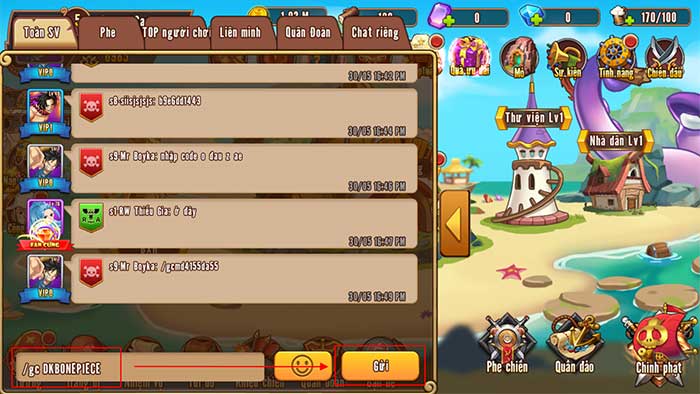 Bước 3: Nhập code theo cú pháp /gc mã giftcode theo danh sách mã được cung cấp phía trên (ví dụ: /gc DKBONEPIECE).