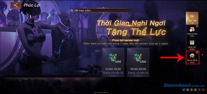 Bước 2: Nhấn vào Phúc Lợi (biểu tượng hộp quà) ở phía trên bên phải màn hình.
