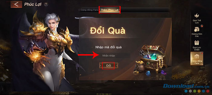 Bước 5: Nhập chính xác hoặc sao chép các mã code được cung cấp ở danh sách phía trên và nhấn nút Đổi.