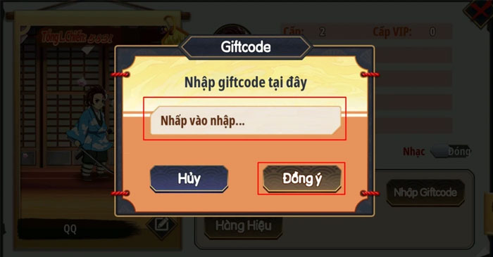 Bước 3: Nhập chính xác mã code được cung cấp ở phía trên vào ô trống. Cuối cùng, ấn Đồng ý và quay trở lại hộp thư trò chơi để thu thập phần thưởng tương ứng.