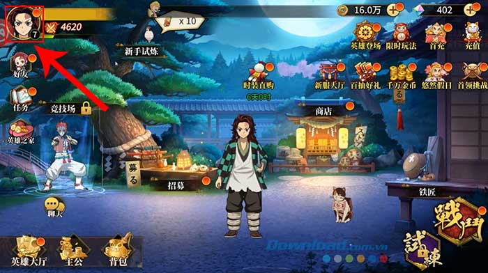 Bước 1: Mở Rage of Demon King trên thiết bị và nhấn vào biểu tượng avatar nhân vật ở góc trên cùng bên trái.