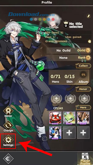 Bước 2: Nhấn vào Settings trong cửa sổ Profile.