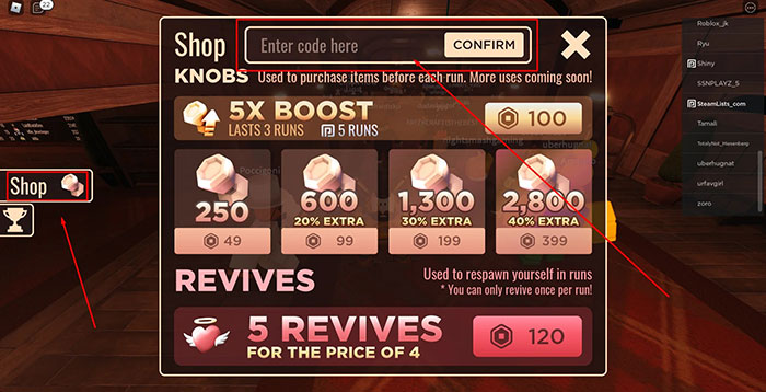 Thao tác nhập code trong Doors cũng tương tự như các trò chơi Roblox khác, với các bước đơn giản như sau: