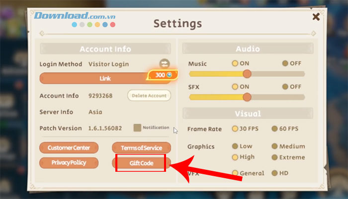 Dragon Arise có trung tâm đổi mã trong trò chơi, nên thao tác nhập code rất dễ dàng với các bước được liệt kê bên dưới đây.