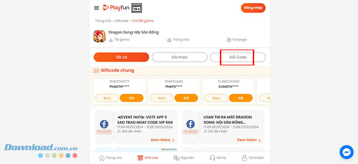 Bước 1: Truy cập trang web https://playfun.vn/giftcode/dragon-song và đăng nhập vào tài khoản Playfun.