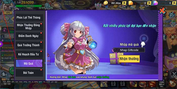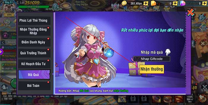 Bước 3: Nhập chính xác hoặc sao chép mã code được cung cấp phía trên và dán vào ô trống và nhấn Nhận thưởng để lấy phần quà ngay lập tức.