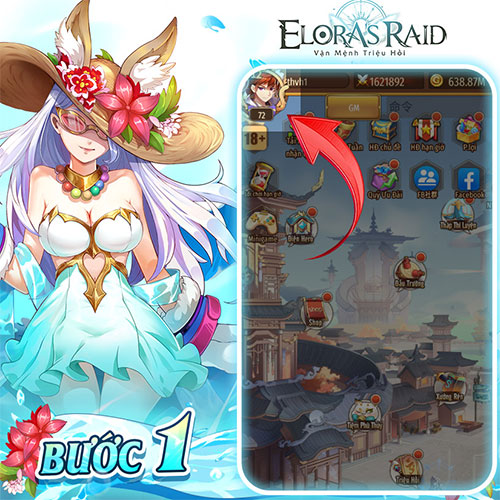 Bước 1: Mở Elora’s Raid: Vận Mệnh Triệu Hồi trên thiết bị và nhấn vào biểu tượng avatar nhân vật ở góc trên cùng bên trái giao diện chính.
