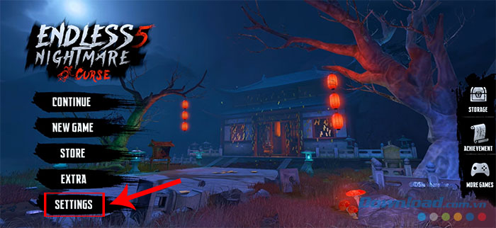 Bước 1: Mở Endless Nightmare 5: Curse trên thiết bị và nhấn vào Settings trên giao diện chính.