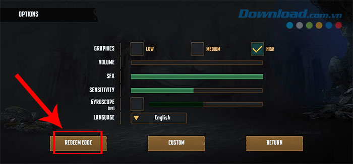 Bước 2: Nhấn nút Redeem Code trong cửa sổ Options vừa mở ra.