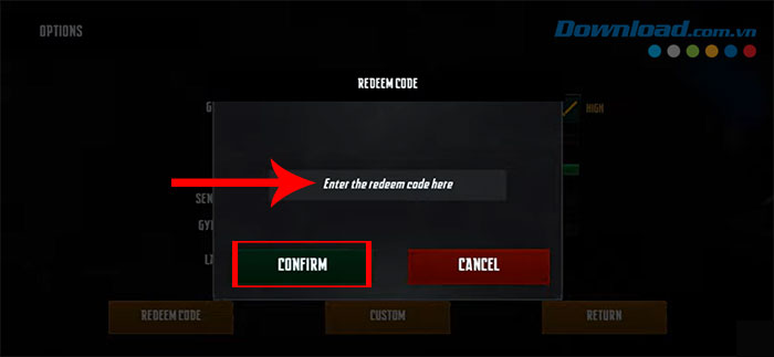 Bước 3: Nhập chính xác hoặc sao chép mã code và dán vào ô trống, tiếp tục nhấn Confirm để xác nhận dùng code. Cuối cùng, nhận phần thưởng ngay lập tức trong trò chơi.