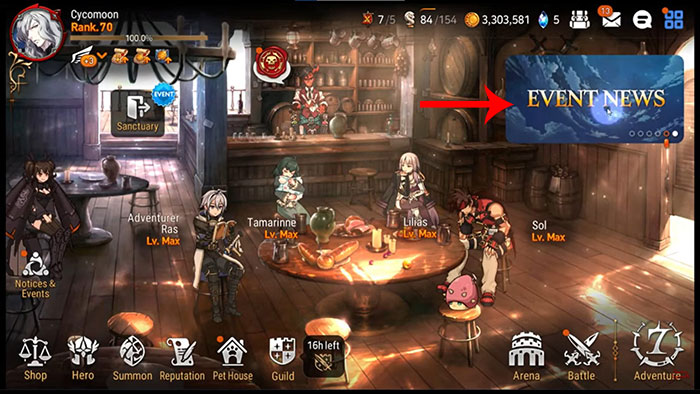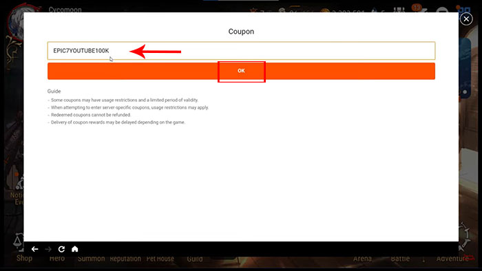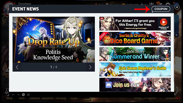 Epic Seven có trung tâm đổi mã trong trò chơi, nên thao tác nhập code rất dễ dàng với các bước được liệt kê bên dưới đây.