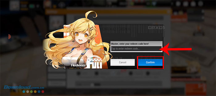 Bước 4: Cuối cùng, nhấn nút Confirm để xác nhận dùng mã và nhận thưởng ngay lập tức trong trò chơi.