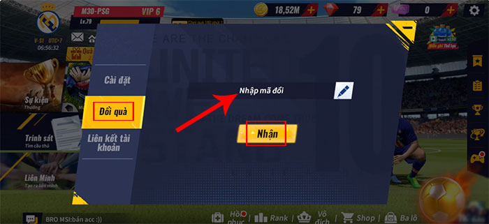 Bước 2: Truy cập tab Đổi quà, nhập chính xác hoặc sao chép mã code ở phía trên và dán vào ô trống. Cuối cùng, chạm vào Nhận để thu thập phần quà ngay lập tức.