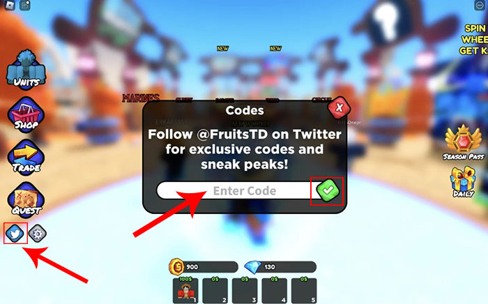 Thao tác nhập code [UPDATE] Fruit Tower Defense vô cùng đơn giản, tương tự như các game Roblox khác, với các bước sau đây: