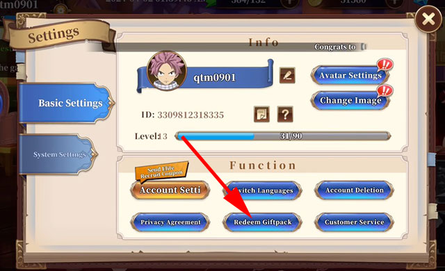 Lưu ý: Người chơi cật đạt đến level 13 mới có thể mở tính năng đổi mã nhận quà.