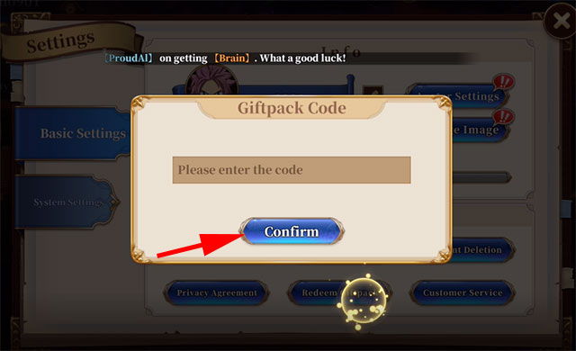 Ở cừa sổ nhập code mới hiện lên, bạn nhập các code được cung cấp bên trên. Lưu ý nhập chính xác như được cung cấp, bao gồm định dạng viết Hoa, viết thường, số. Mỗi code chỉ có thể nhập và đổi quà 1 lần.
