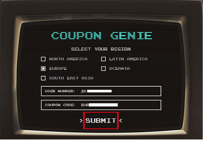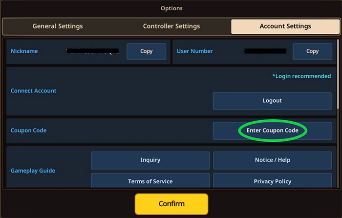 Bước 4: Nhập các thông tin về server, User Number đã sao chép ở trên. Trong mục Coupon Code, nhập chính xác hoặc sao chép mã code từ danh sách trên.