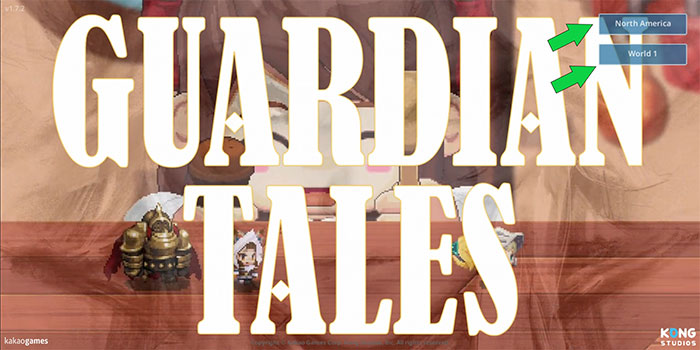 Bước 1: Mở Guardian Tales và chú ý tới góc trên bên phải màn hình để biết server hiện tại mình đang chơi.