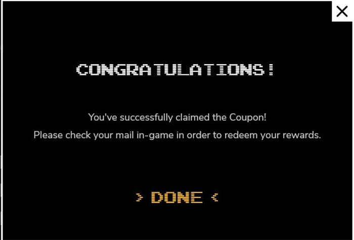 Bước 5: Nhấn nút Submit để xác nhận. Nếu mã còn hiệu lực, người chơi sẽ nhận được một thông báo.