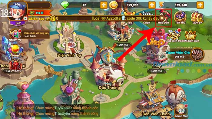 Bước 1: Mở Gun X Mobile trên thiết bị và nhấn vào Hấp dẫn ở góc trên bên phải của giao diện chính.