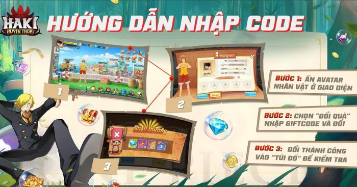 Thao tác nhập giftcode Haki Huyền Thoại quy đổi phần thưởng rất đơn giản với các bước được thực hiện như sau:
