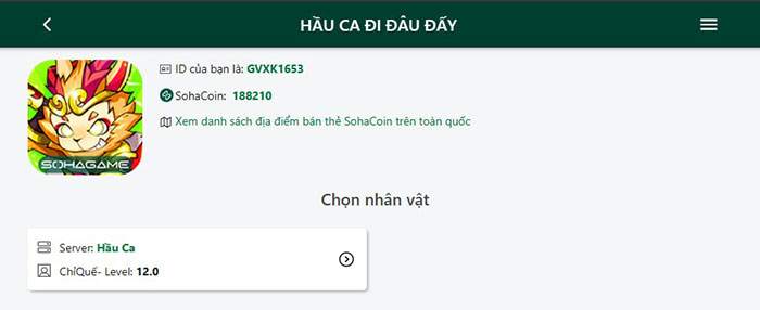 Bước 2: Chọn nhân vật và server Hầu Ca Đi Đâu Đấy đang chơi.
