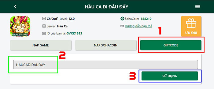 Thao tác nhập giftcode Hầu Ca Đi Đâu Đấy quy đổi phần thưởng rất đơn giản với các bước được thực hiện như sau:
