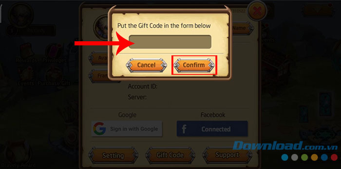 Bước 3: Nhập chính xác hoặc sao chép mã code được cung cấp phía trên vào ô trống và nhấn nút Confirm.