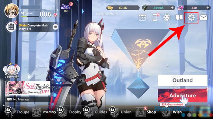 Bước 1: Mở Higan: Eruthyll trên thiết bị và nhấp vào biểu tượng cài đặt nằm ở phía dưới bên phải của màn hình.