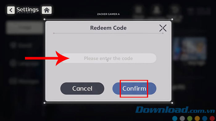 Bước 4: Nhấn nút Confirm để xác nhận dùng code và quay trở lạu hòm thư để nhận phần thưởng.